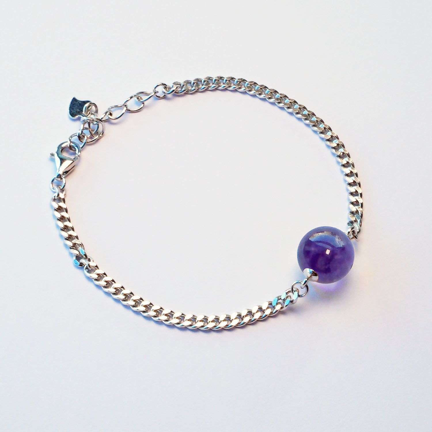 Discover timeless elegance with our 925 sterling silver Cuban chain bracelet, featuring a single 10mm natural crystal bead. Adjustable 15–19cm, this unisex bracelet is available in nine gemstone colours including Amethyst, Rose Quartz, Citrine and more. Each crystal carries a unique meaning, making it the perfect choice for personal wear or as a thoughtful gift.